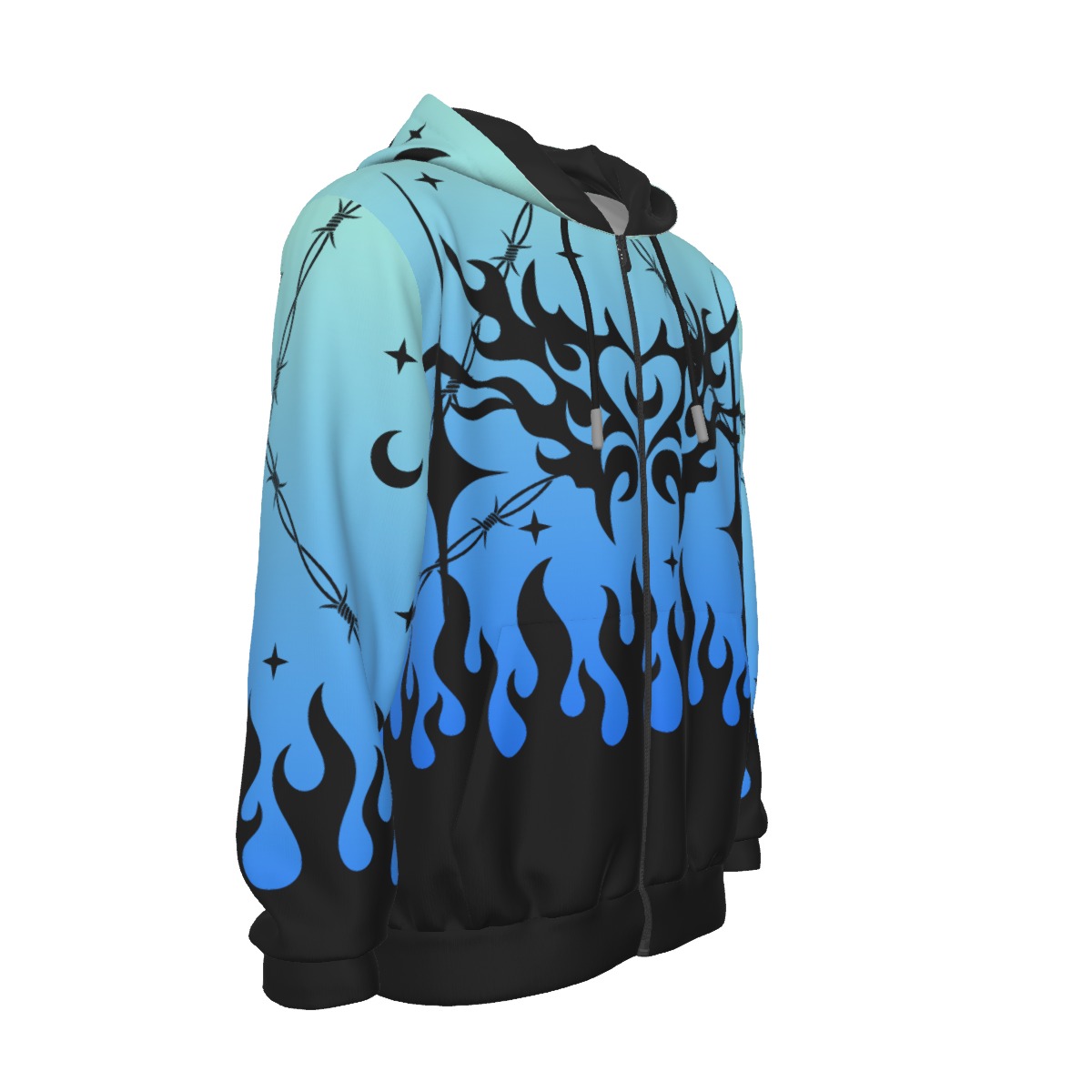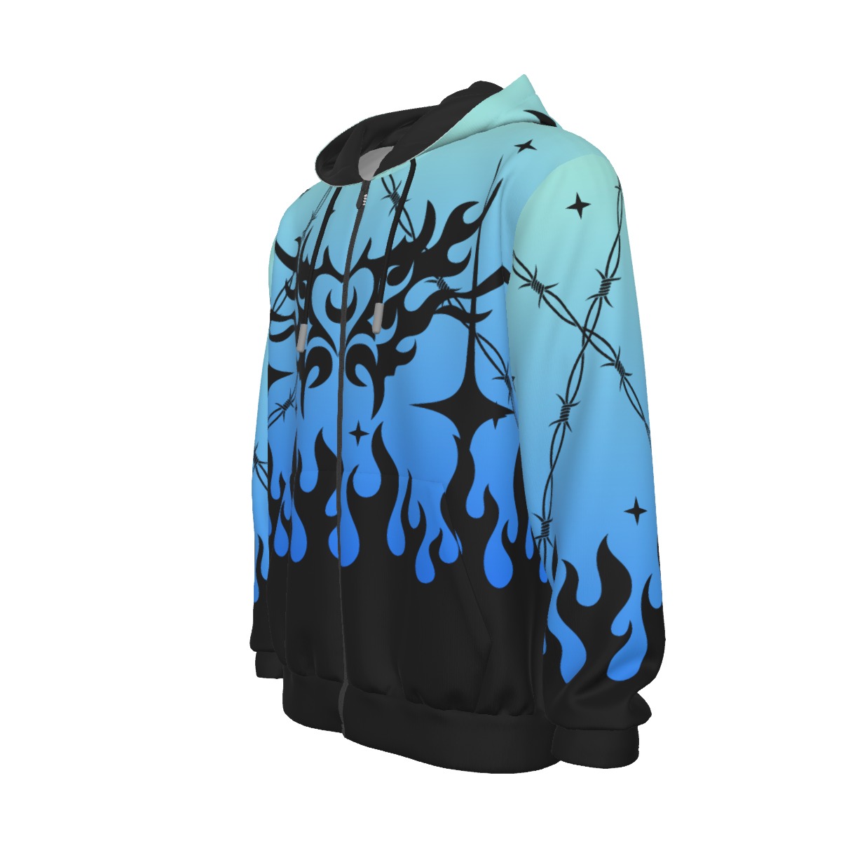 Men’s hoodie, zipper closure, classic style, long sleeves, with adjustable hood rope. Polyester outer and cotton fabric inner, make it stylish and more comfortable to wear